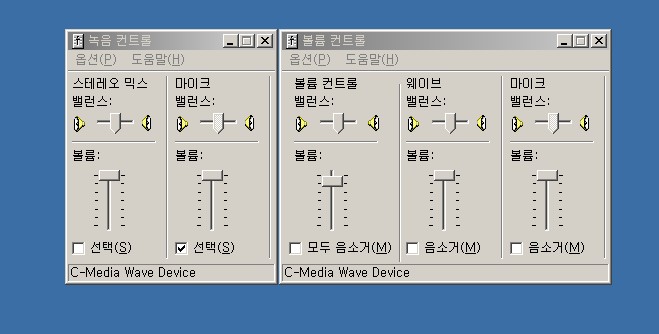 음악이 나갈땐 저 위에 있는 녹음 컨트롤과 벌륨 컨트롤에서 마이크 밸런스만 다 완전히 밑으로 끌어 내리고요.