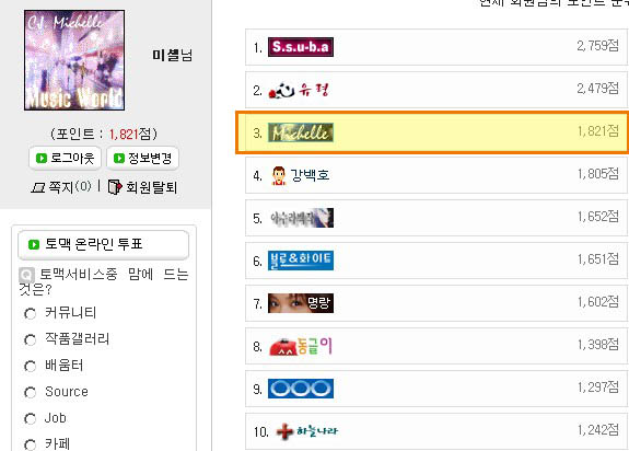 언제 또 내려갈지 모르지만 ㅋㅋㅋ 3위 안에 들었을때 얼릉 캡쳐했어요~~