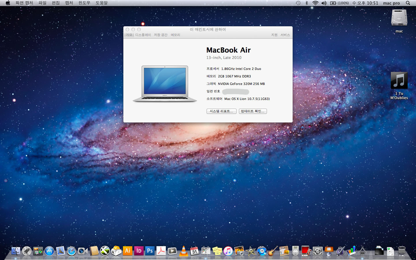 깨끗한 2010년 맥북에어 13인치 == 25만원