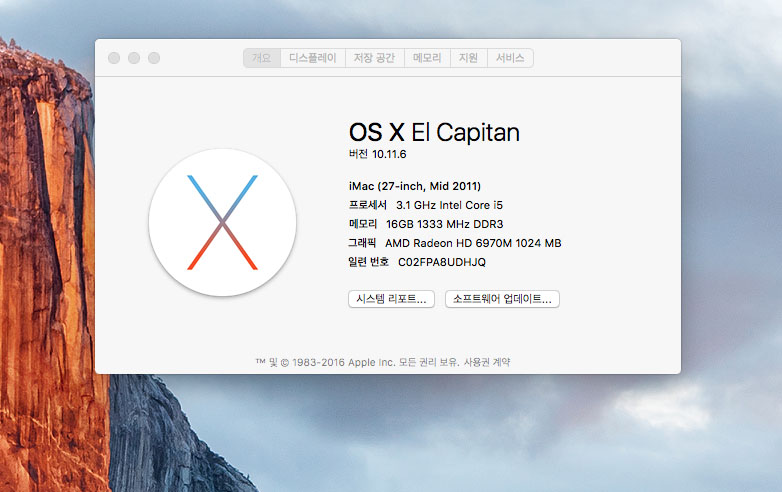 맥os 엘캐피탄 설치됨