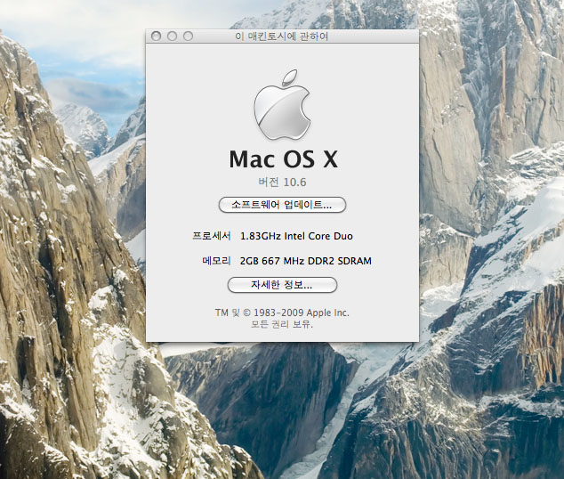 시스템은 스노우레오파드로 클린설치되어 있습니다