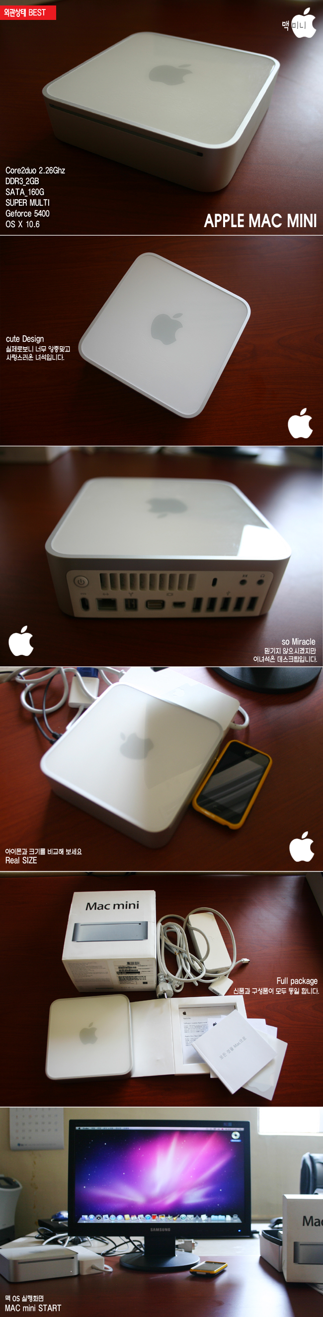 앙증맞은 맥미니 A급 풀박스 팝니다 코어2듀오 2.26, SATA160G DDR3-2G, 멀티, 지포스5400 OS설치됨