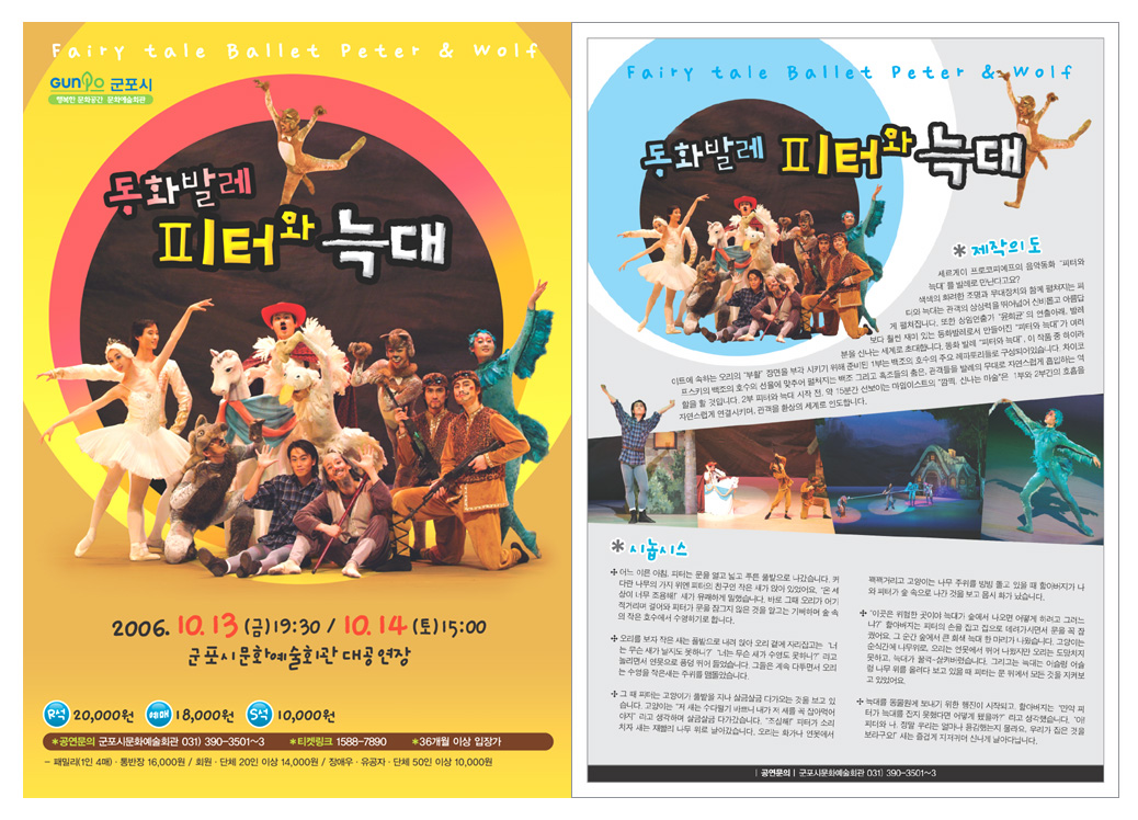 좋은데요..나날이 발전되는 며루님 모습 보기 좋네요..저두 잘하지는 못하지만 그런게 이상하게 느껴져요.그래서 말인데..타이틀 동화발레 피터와 늑대<---요 서체 무슨서체인가여?
