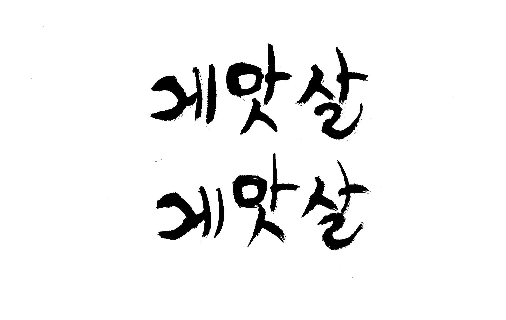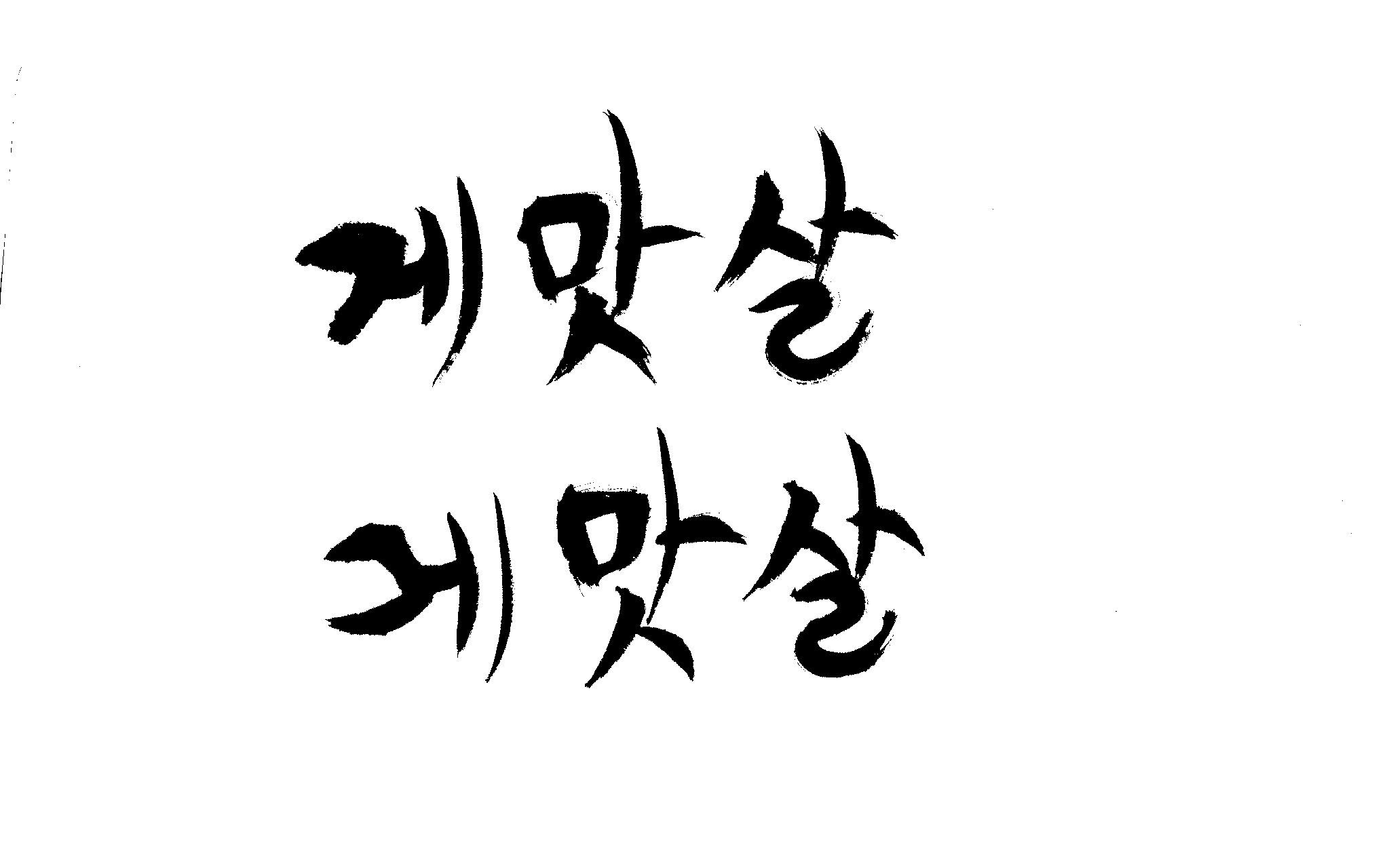 캘리 부탁드립니다. 김철호 일반 0 6378 2009.01.30 09:49 > > 제가 이리저리 써보기도 했으나 너무 이상해서 도움을 받고자 합니다. > 단어는 '게맛살' 입니다. 패키지디자인에 사용할 타이틀입니다. > 급한사항이니 부탁드립니다. 감사합니다. ^^ >